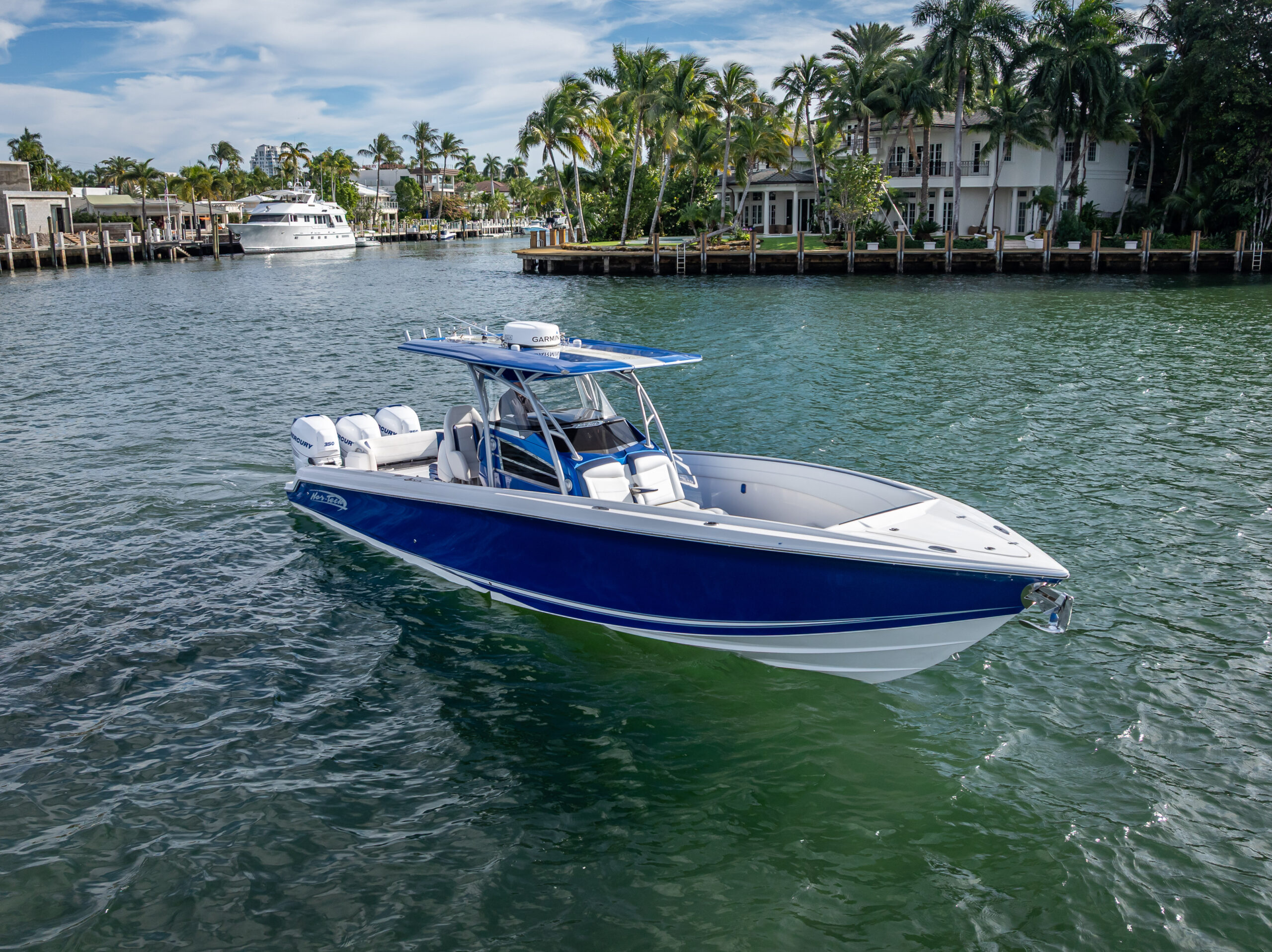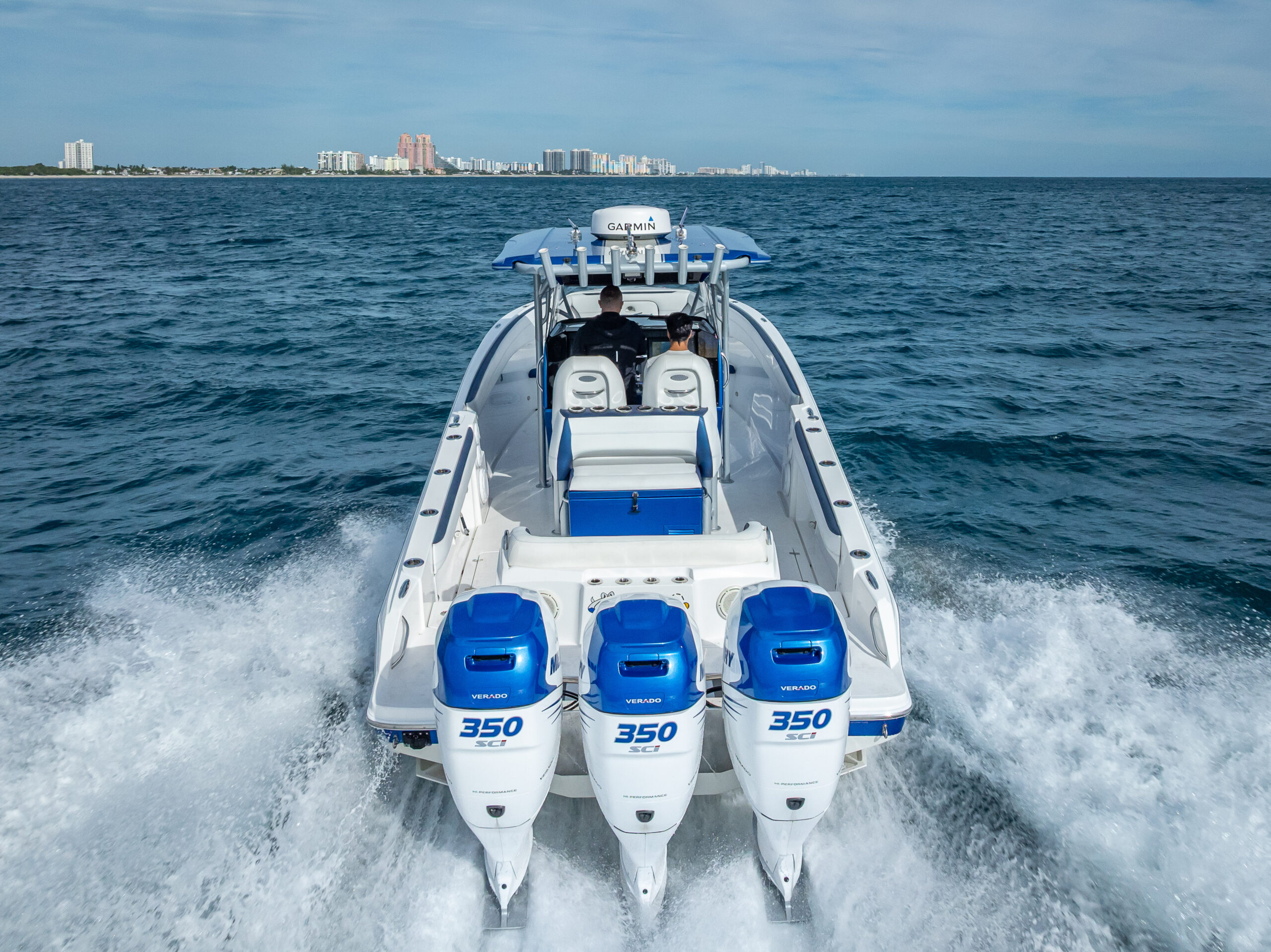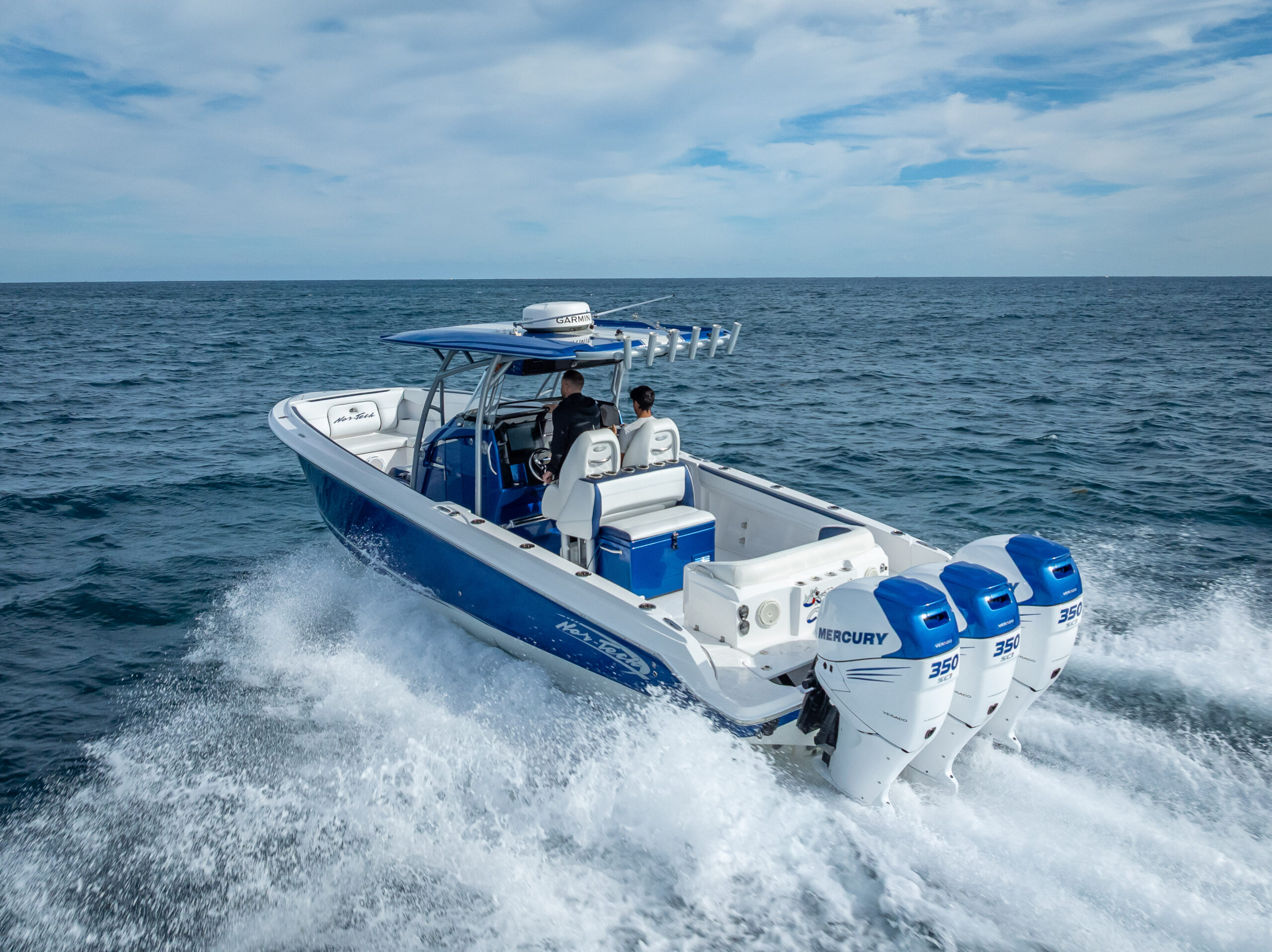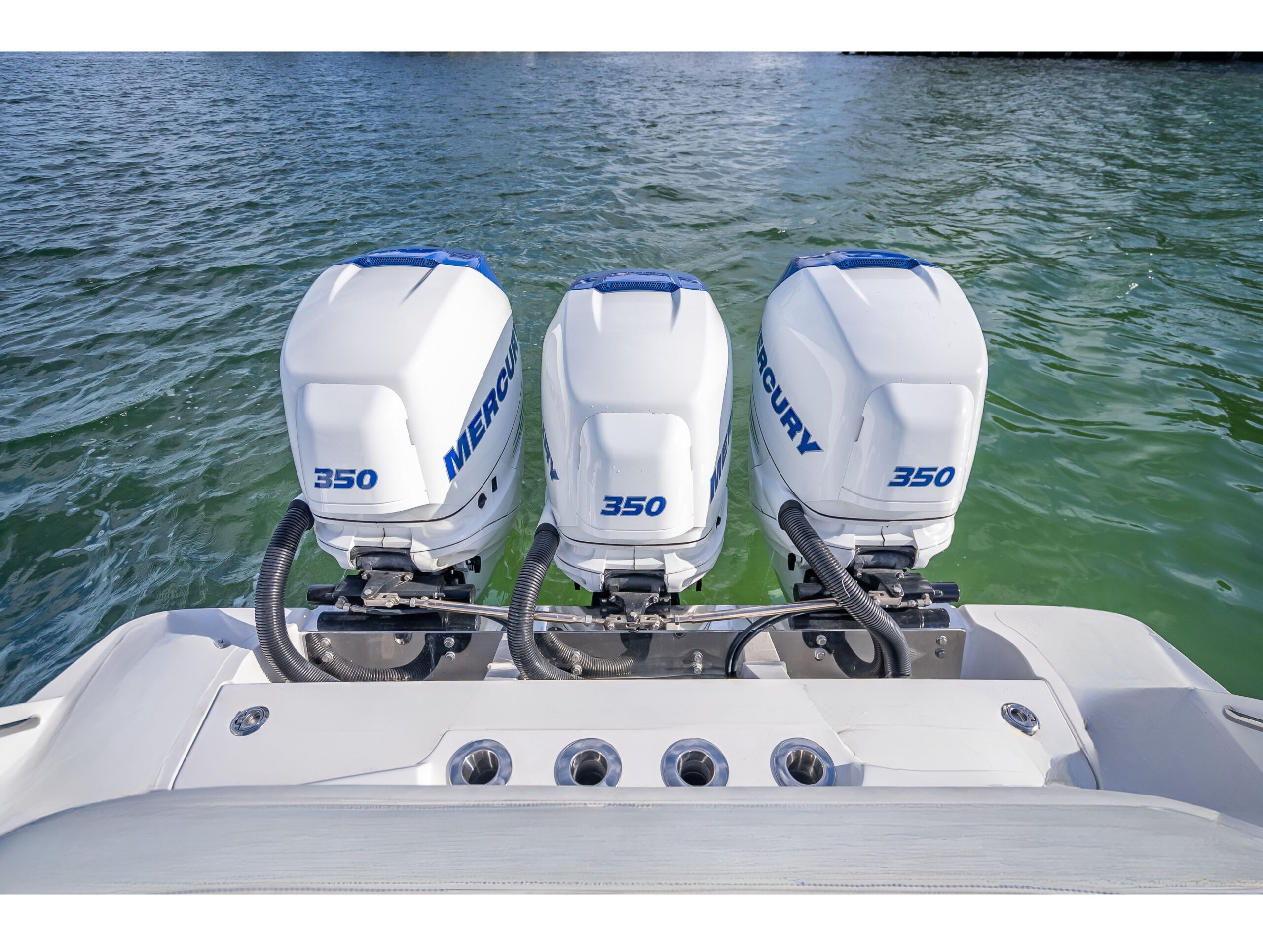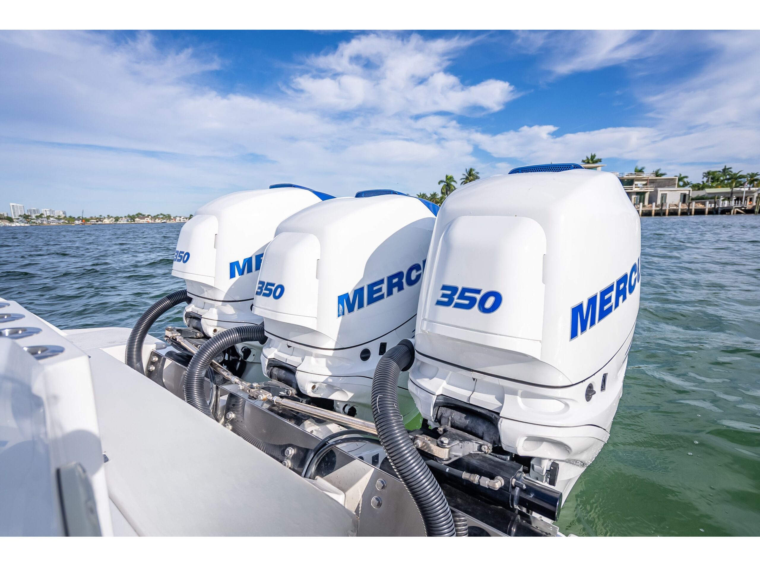 Powered by triple Mercury Racing 350 SCI outboards (1,050 total horsepower), this boat offers thrilling acceleration, impressive top-end speed, and reliable performance. With 715 hours, it has been well maintained and is ready for its next owner.