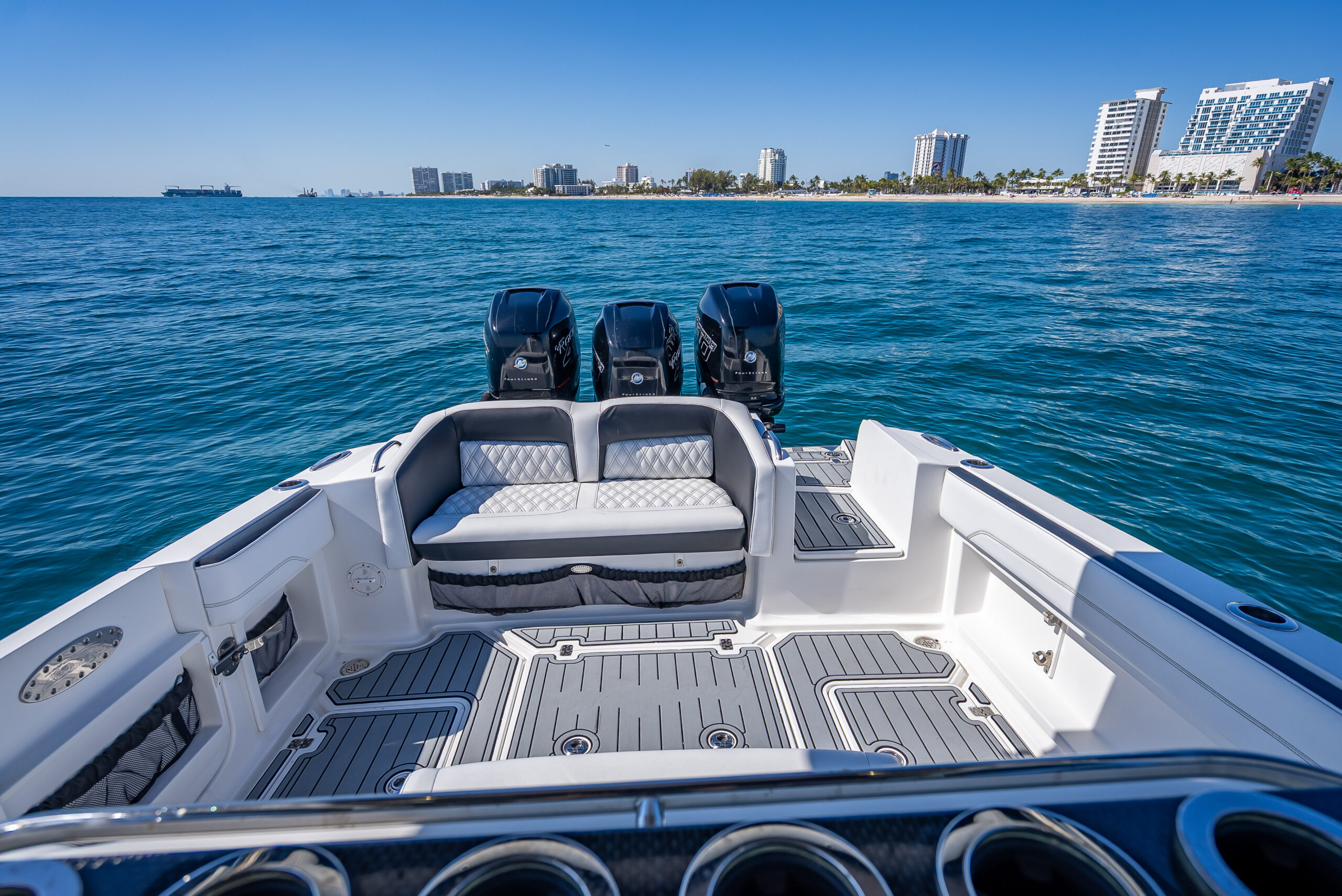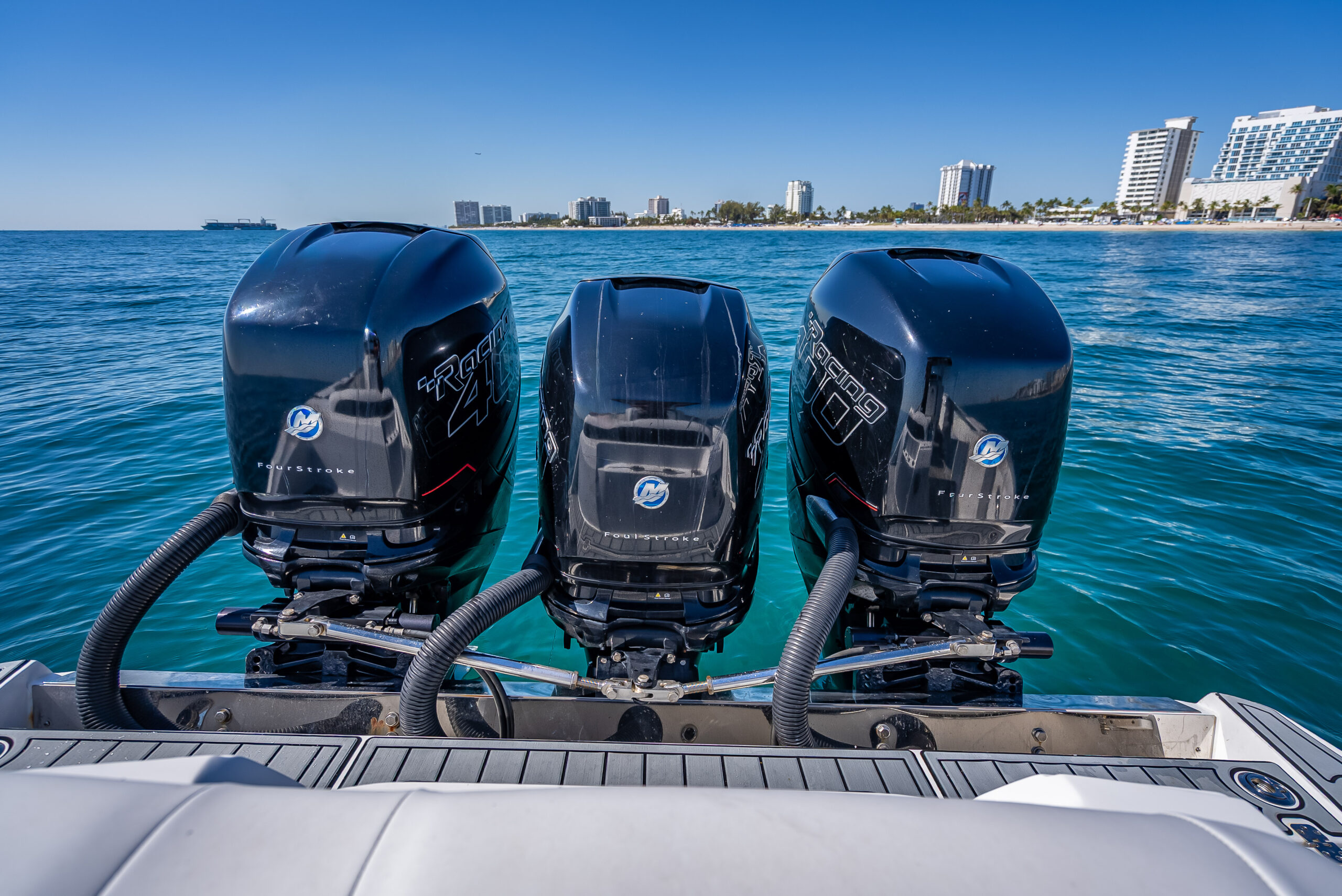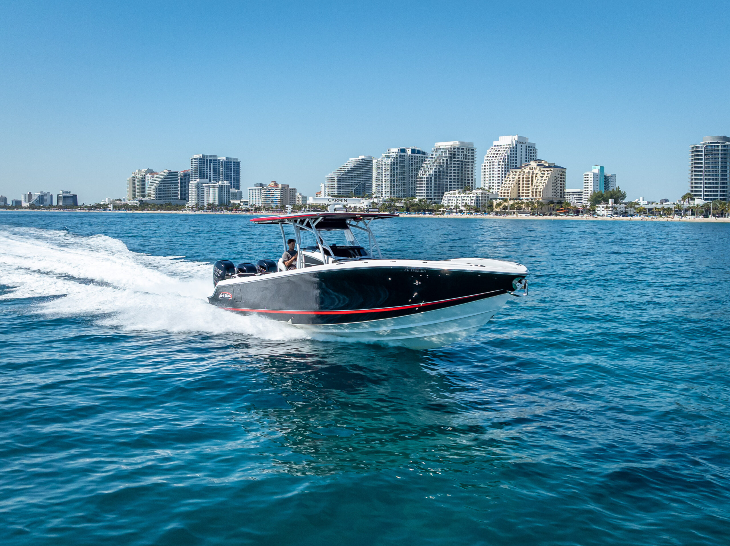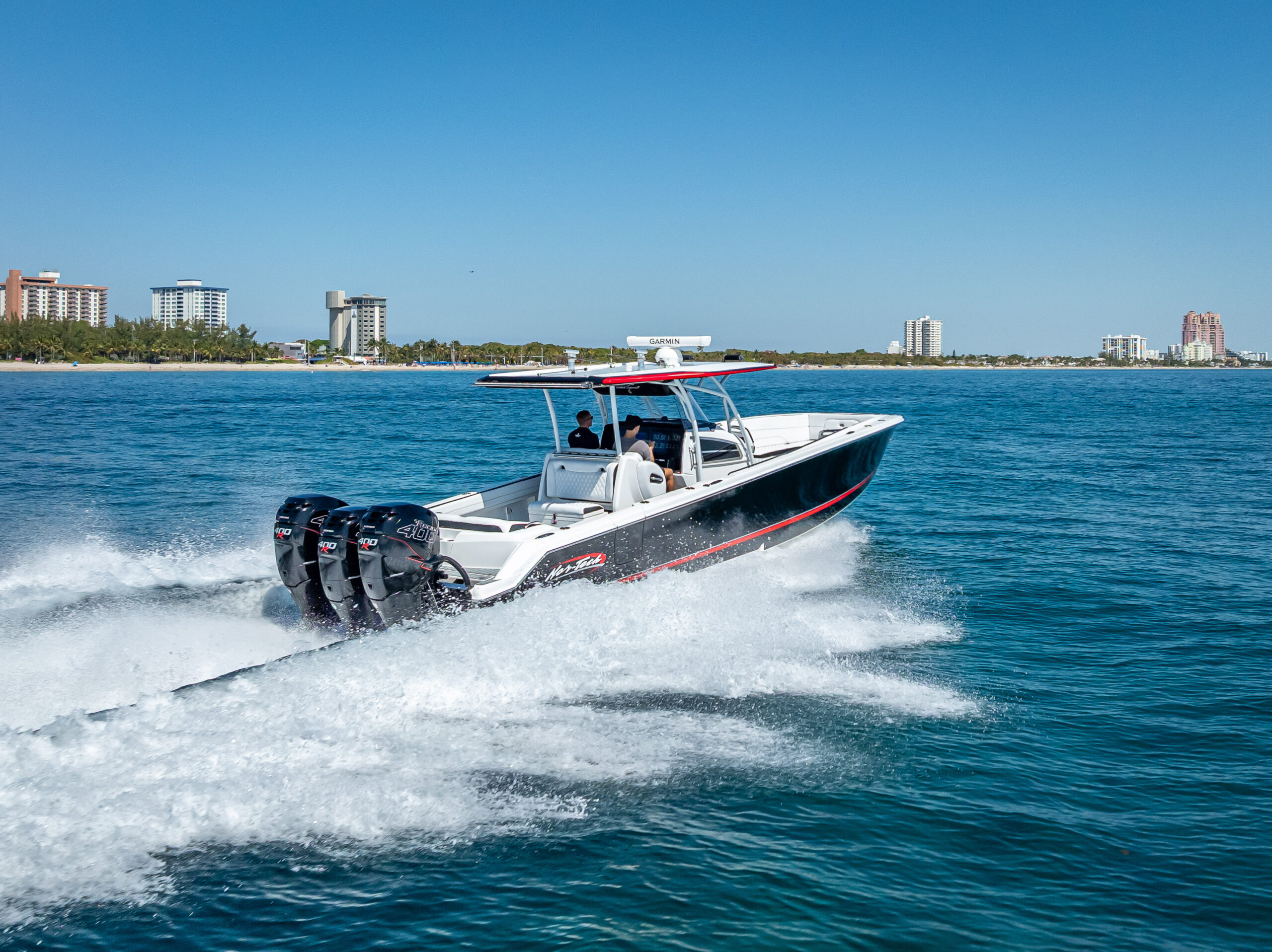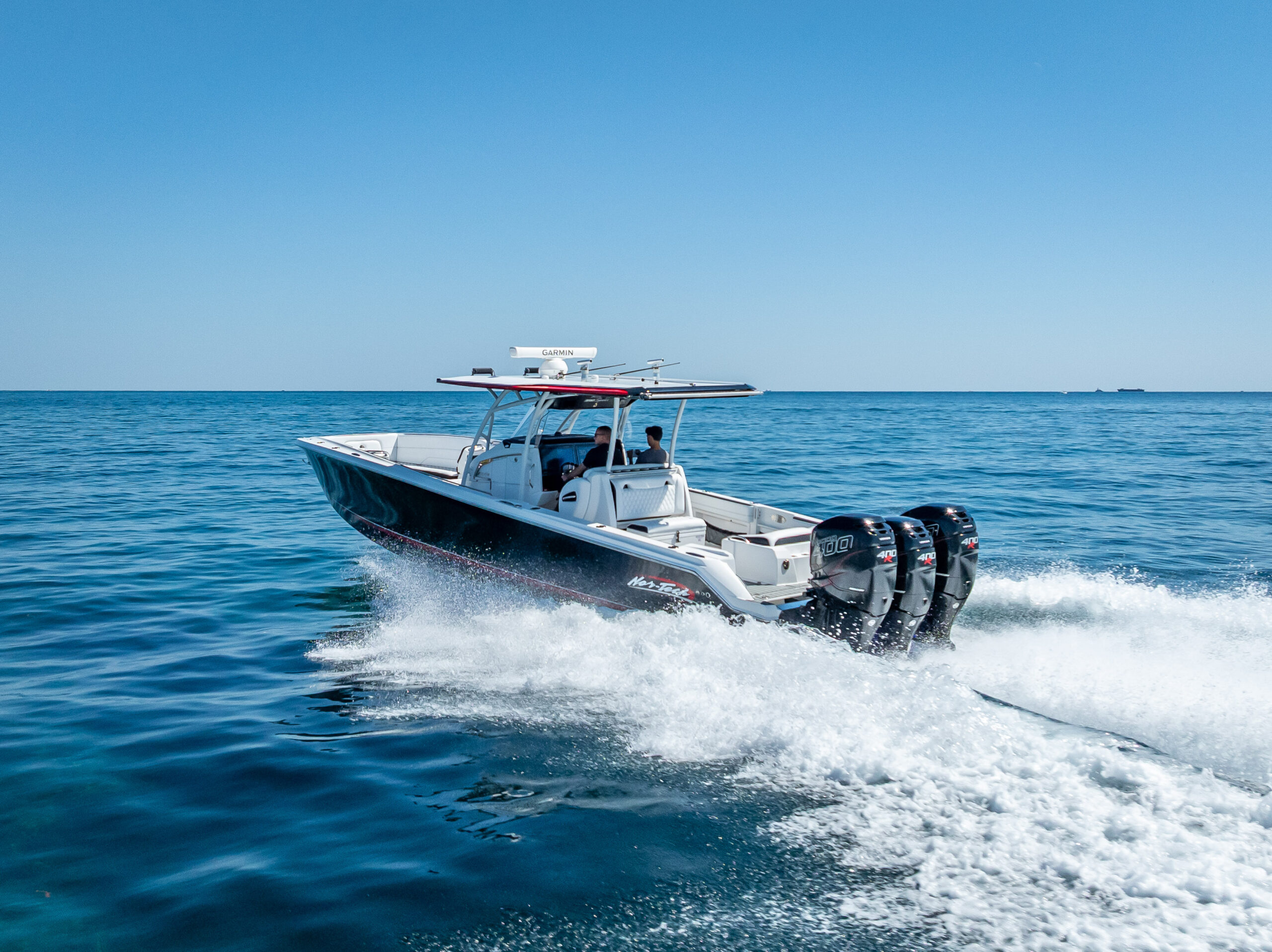Introducing the stunning 2018 Nor-Tech 390 Sport Center Console, a high-performance boat that combines elegance with power. Measuring an impressive 39 feet in overall length, this vessel is crafted from durable fiberglass and features a sleek Deep Vee hull shape, ensuring exceptional handling and stability on the water. Equipped with three powerful Mercury Racing 400 R outboard engines, each delivering 400 horsepower, this boat promises exhilarating speed and performance. With only 260 hours of use, these engines are ready for adventure. The stainless steel 4-blade propellers enhance efficiency and responsiveness, making every outing a thrilling experience. Inside, you’ll find a well-appointed cabin and head, providing comfort for your journeys. Additional features include an electric windlass for easy anchoring, making this boat as functional as it is stylish. The Nor-Tech 390 Sport Center Console is perfect for those seeking both luxury and performance on the water.