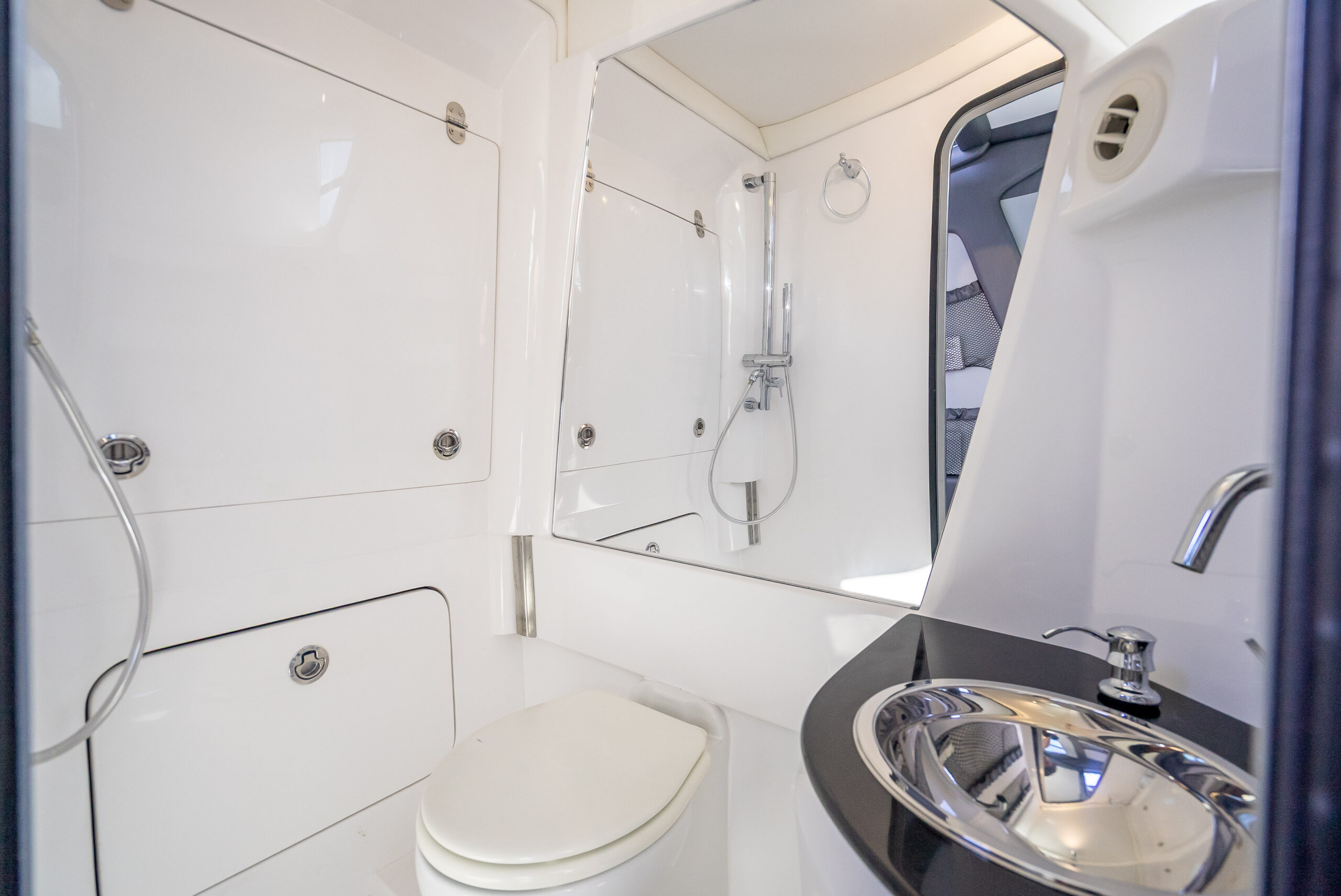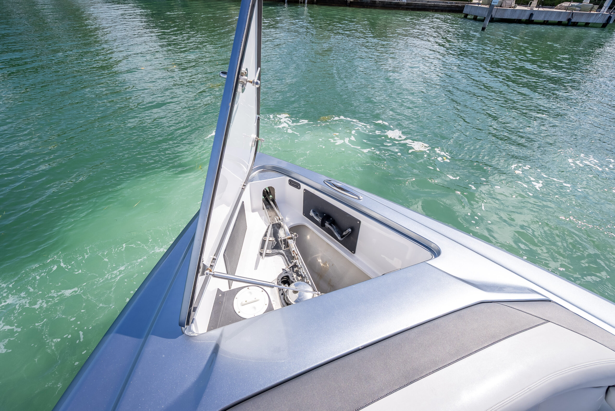 Additional highlights include a power retractable sunshade, second-row seating with aft lounger, underwater lighting, and a fully integrated electronics suite.